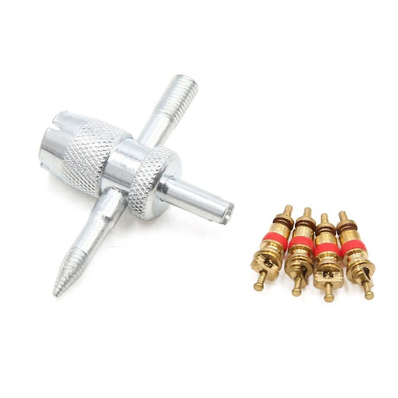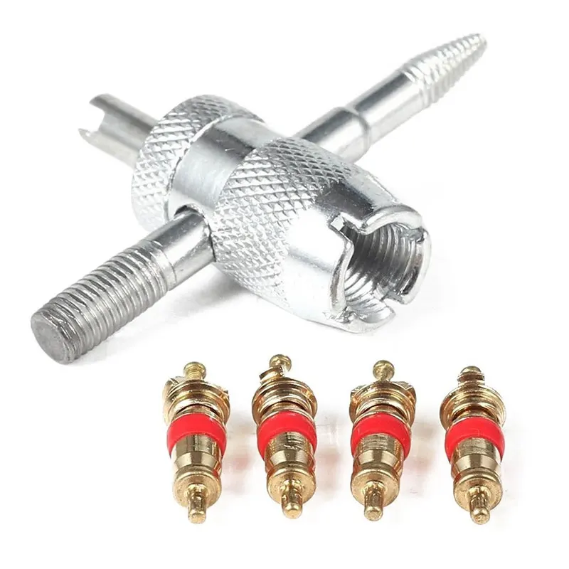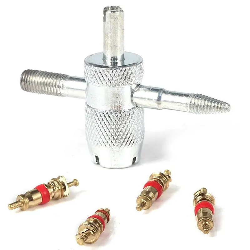 1 set di nucleo valvola in rame con strumento di rimozione dello stelo della valvola del pneumatico 5 in 1, strumento di riparazione pneumatici, strumento di rimozione del nucleo valvola, strumento di pulizia pneumatici