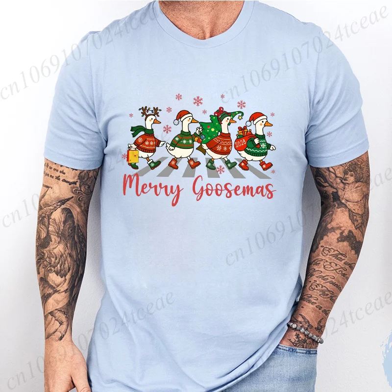 Christmas Family T Shirt for Men Women Funny Goose Group Matching Christmas Print Men Top Graphic Fashion Design T-Shirt Casual