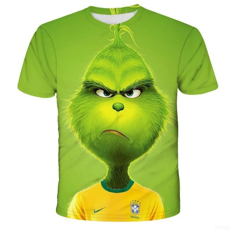 Cross Border New 2025 Christmas Cartoon Green Fur Monster 3D Printed Men's T-shirt Short Sleeved Christmas Grinch
