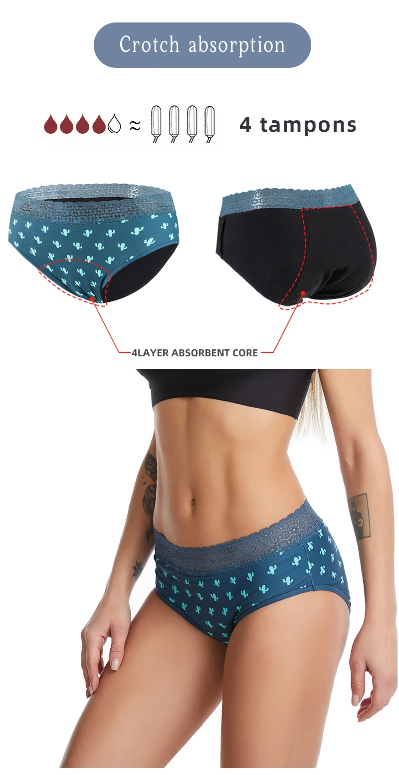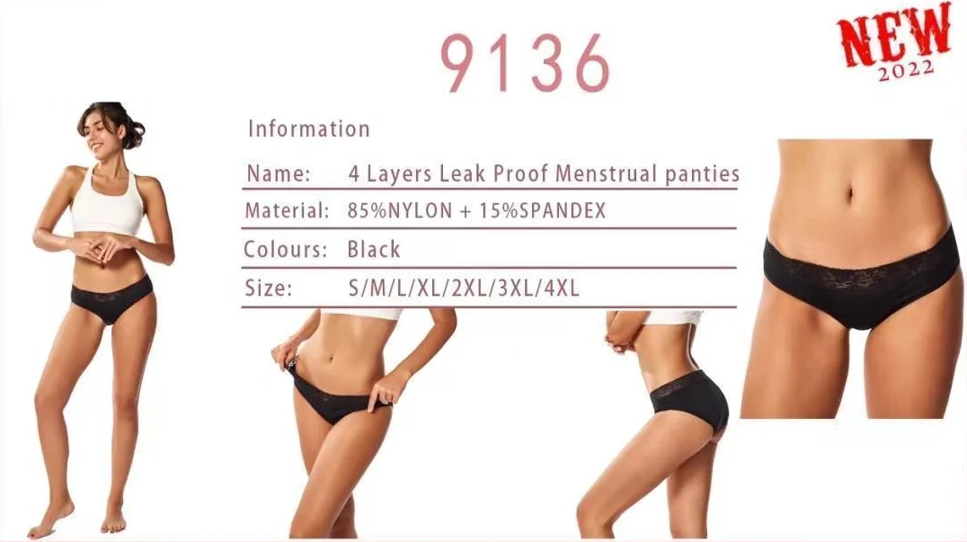 Custom 5 Layers Lace Hollow Out Postpartum Leakproof Waterproof Incontinence Absorbent Women Underwear Period Menstrual Panties