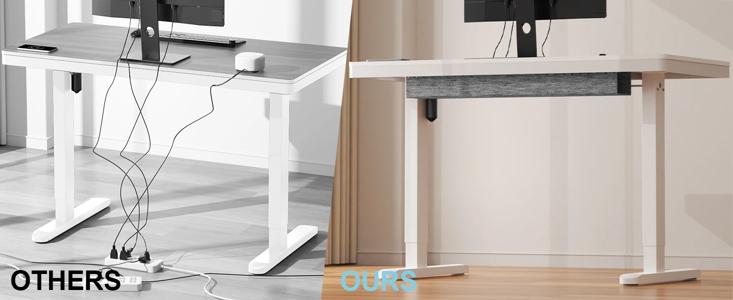 * SMART CABLE MANAGEMENT – Maintain a clean and clutter-free workspace with the built-in felt cable management tray. This standing desk with cord organizer keeps wires tidy and out of sight, ideal for home offices and minimal setups