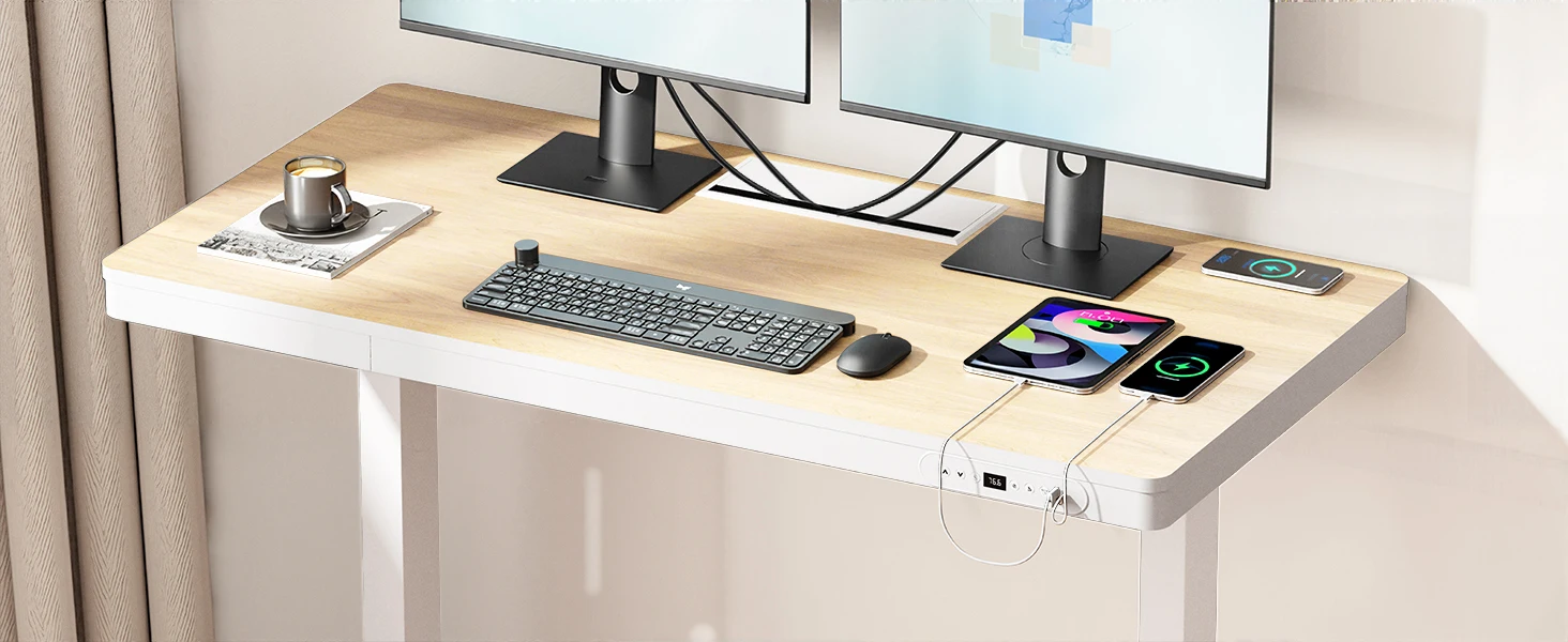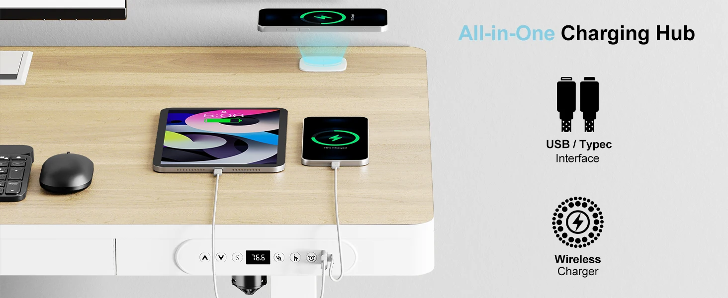 * INTEGRATED CHARGING STATION – Power your devices with built-in wireless charging, USB-A, and USB-C ports. Whether you're charging your phone, earbuds, or tablet, this standing desk keeps your workspace cable-free and fully powered