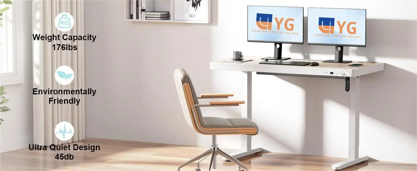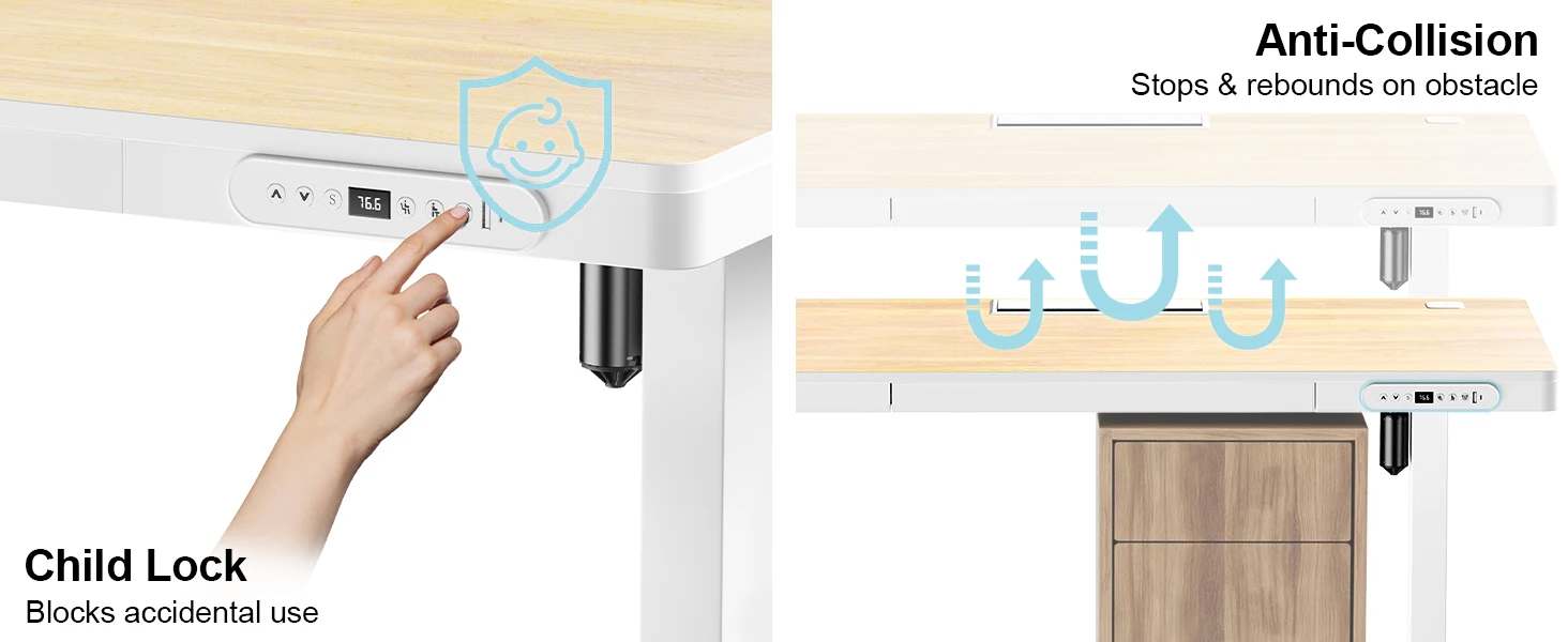 * STABLE HEIGHT ADJUSTMENT – Smooth and quiet lift mechanism supports up to 80kg (176 lbs), allowing effortless transitions between sitting and standing. Includes two memory presets, anti-collision protection, and child lock for safe daily use
