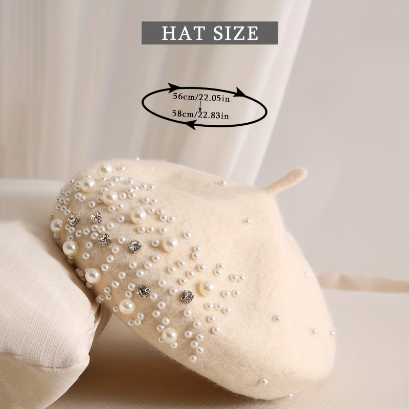 Faux Pearl Rhinestone Beret Winter Thermal Beret Outdoor Fashion Casual Style Hat For Women Chinese New Year Presents Valentine's Gifts