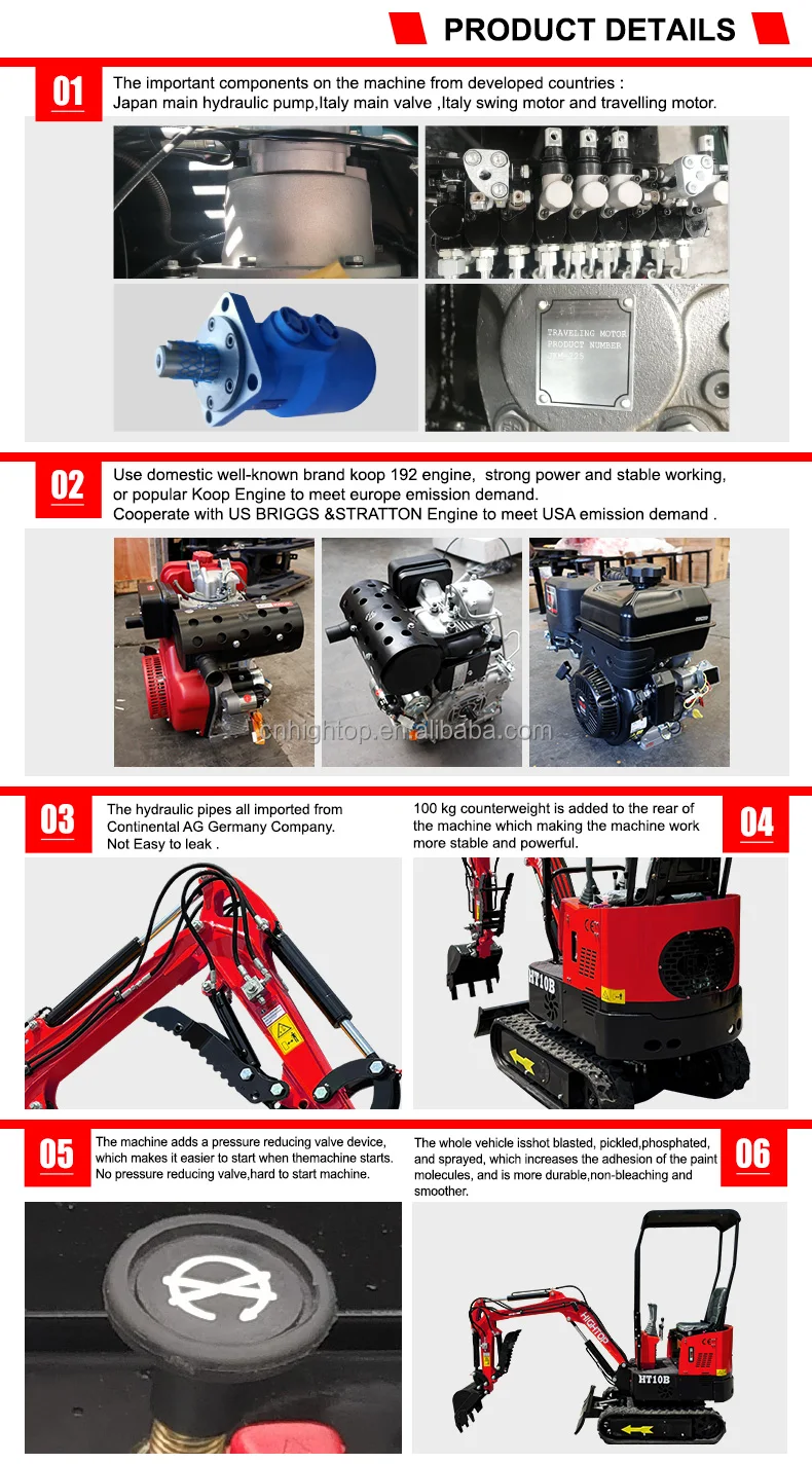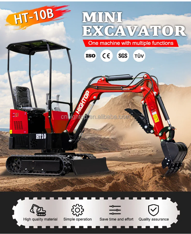 Free Shipping Arrived in Seven Days HT10 1Ton Excavator Engine EPA Digger Farm Small Excavators with Free Bucket