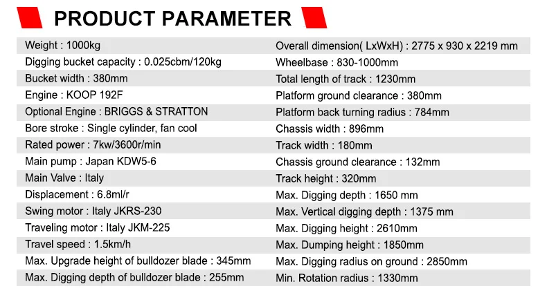 0.8ton to 6ton crawler excavators,you can choose the suitable model you need.