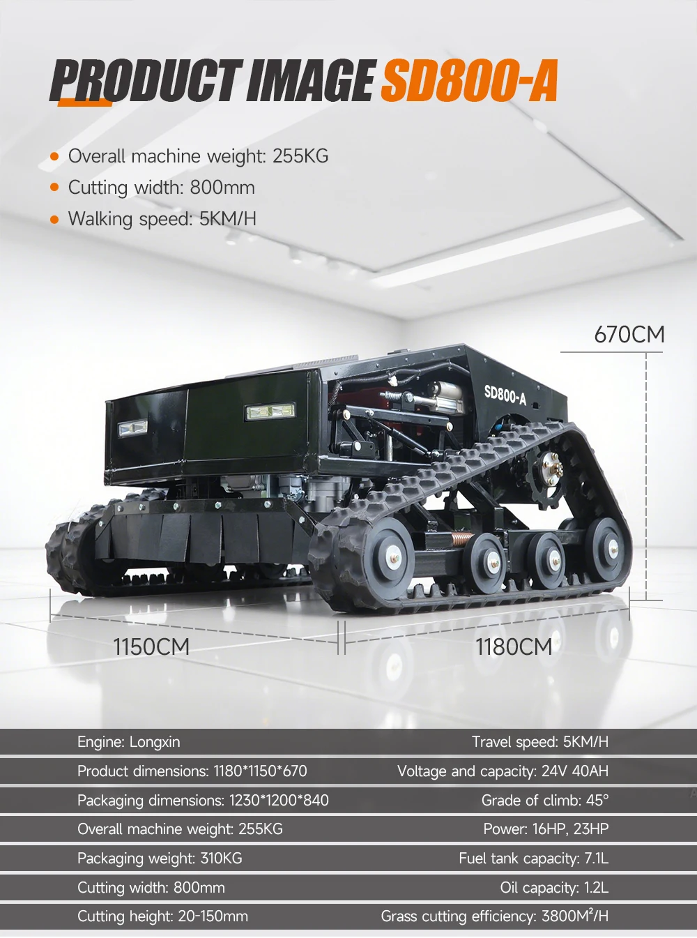 Free Shipping CE Certified New Design Cutting Width 900mm Self-Propelled Crawler Design  Remote Control Lawn Mowing Robot
