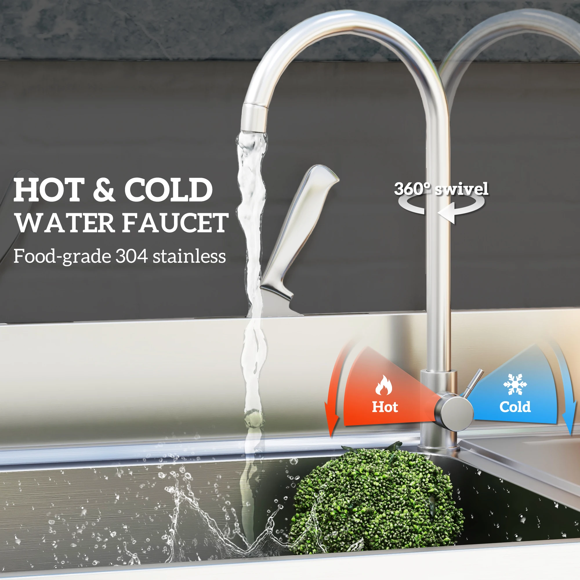 * Portable Sink with Hot Water: Have a fully functional outdoor kitchen; the food-grade 304 stainless steel faucet has the hookups needed for both hot and cold water.