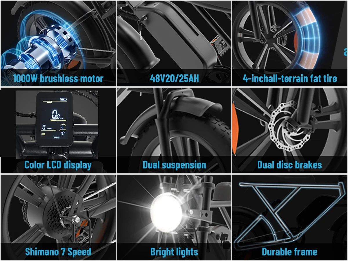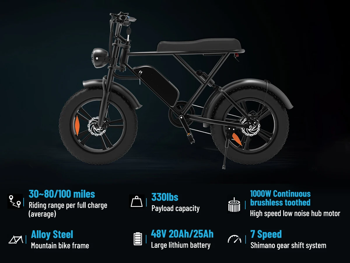 Free Shipping US Warehouse Ready Stock Electric Bike 1000W 48V 20Ah 20*4Inch Fat Tire Mountain Road US Popular E-bike Long Range
