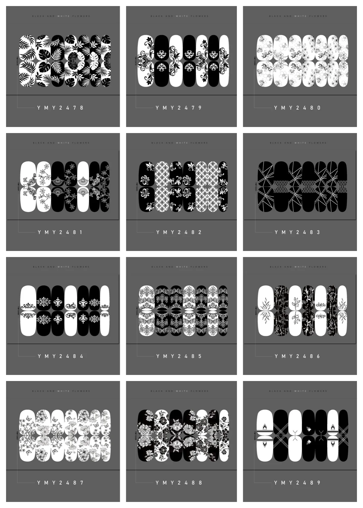 Full Cover Nail Stickers Black and White Nail Decoration Nails Sticker Designer Self Adhesive Nail Sticker Nail Art Sticker