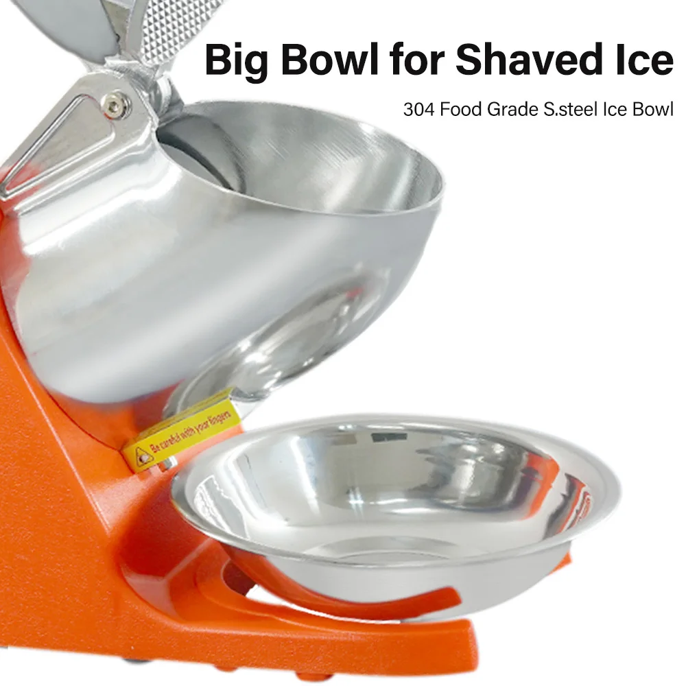 ● Safe & Hygienic Design: Crafted with food-grade, rust-resistant stainless steel for both the body and blade, the Reespring Shaved Ice Machine prioritizes hygiene and food safety. A seamless, easy-to-clean shaver blade design plus an included food-grade stainless steel bowl and ice pick facilitate effortless maintenance and reuse.