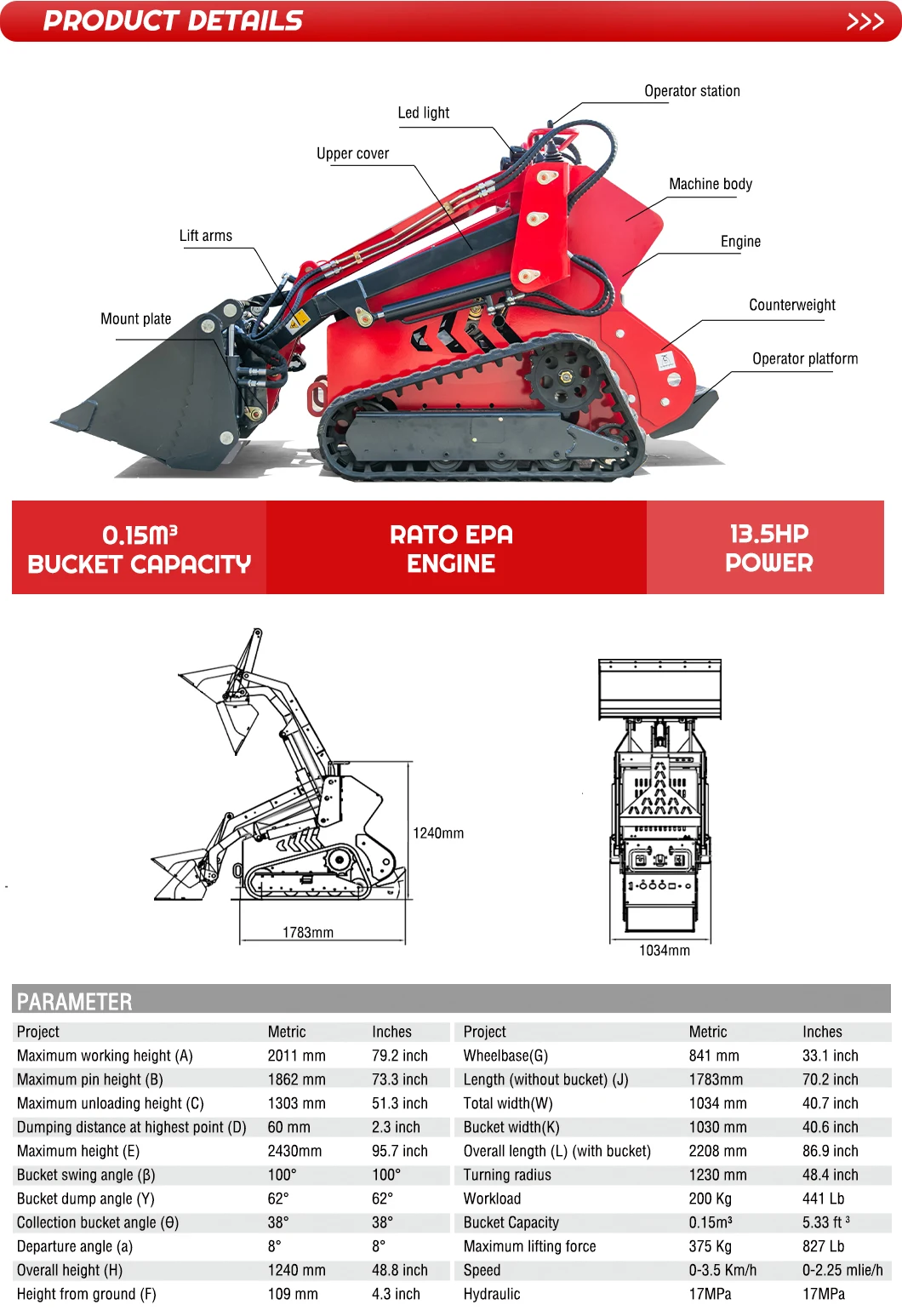 High Quality 450kg Crawler Skid Steer Loader USA in Stock Free Shipping Within 3 Days Delivery EPA CE Engine