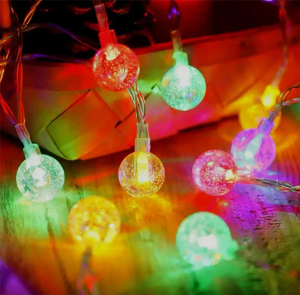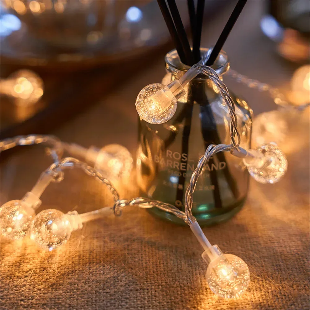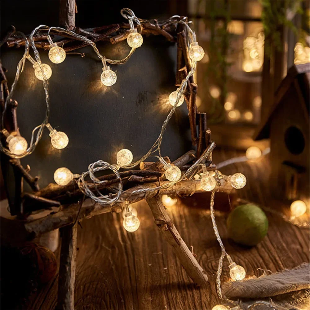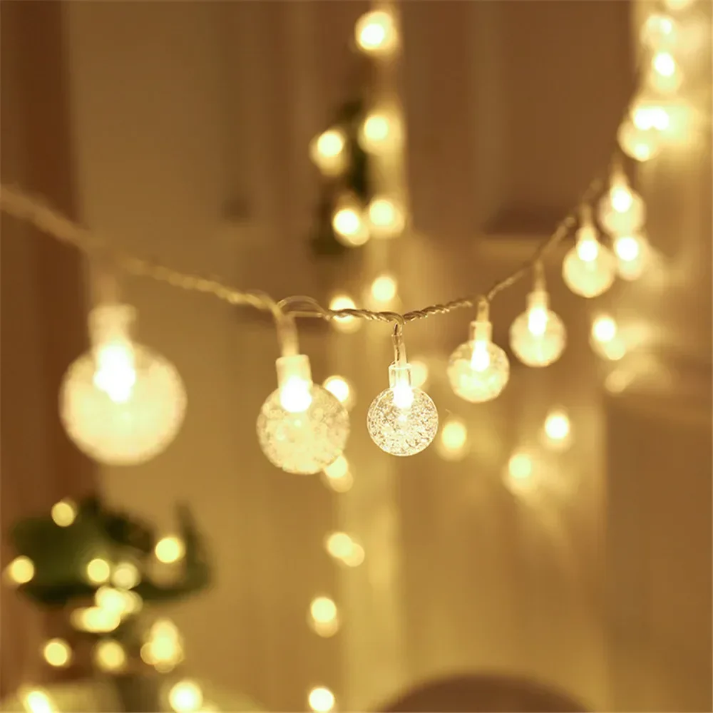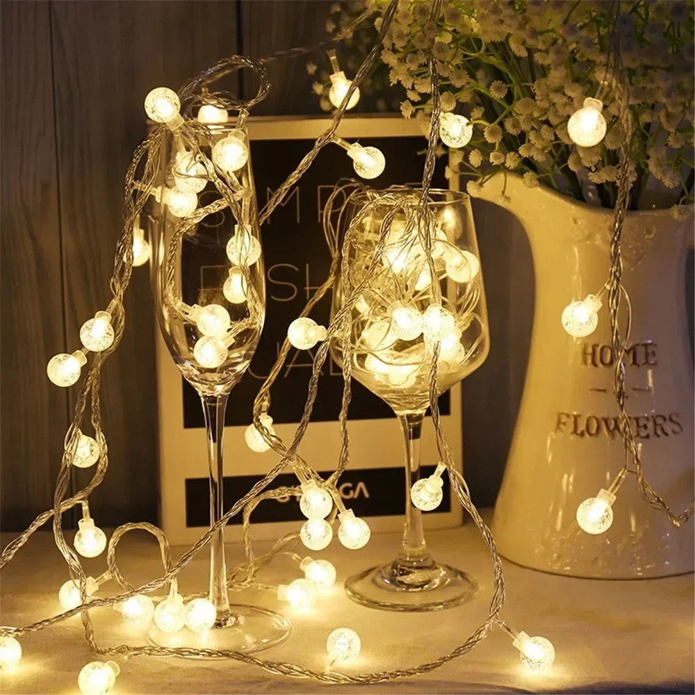 LED Bubble Ball String Lights Golden Glow Battery Operated Indoor Fairy Lights for Wedding Holidays New Year 2026 Decorations