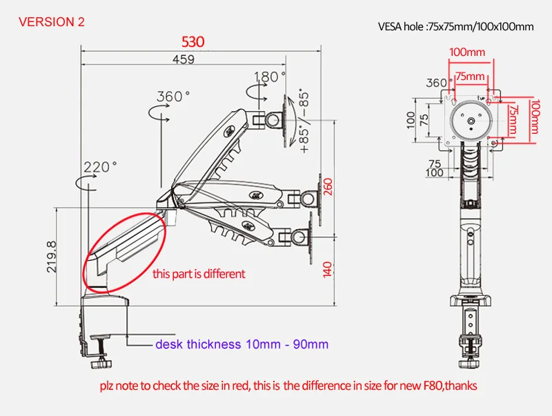 F80 desktop flexi- monitor desktop mount is built-in durable Gas-strut or gas spring cylinder to enable to move our screen any directions and height at your wish. Allow you to experiencing the best of ecological interface design for the best viewing position. Added the gravity spring pivot joint design offered effortless titling position to eliminate gray viewing angle.