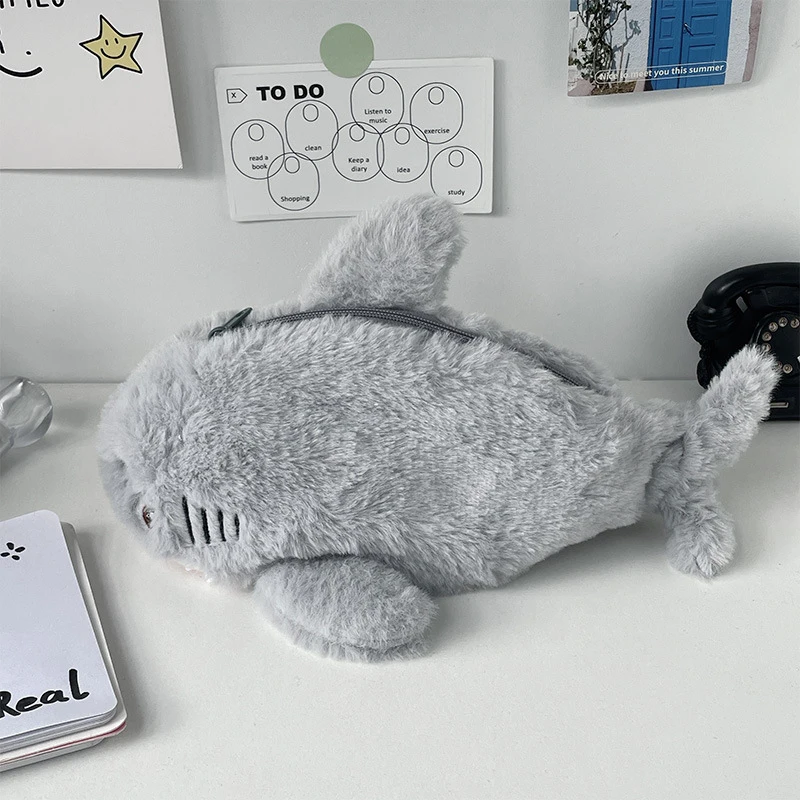 This plush shark pen bag can not only be used as a stationery bag, but also can be used as a cosmetic bag to store various cosmetics. Its convenience and practicality make it a must-have when traveling.