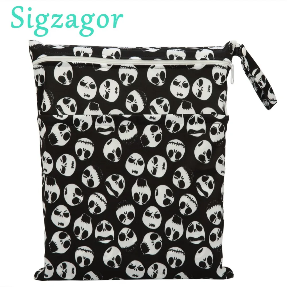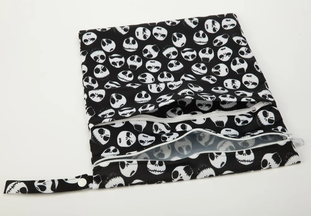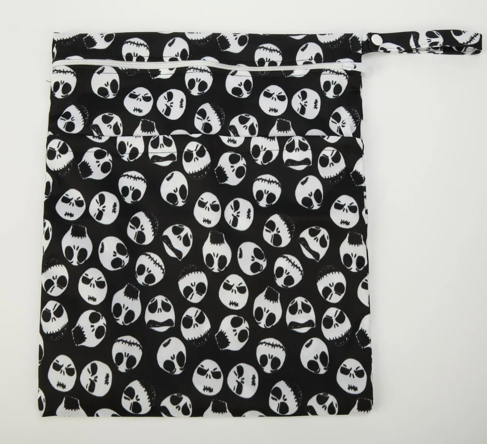 [Sigzagor]1 Wet Dry Bag Diaper Bag Nappy Bag Insert Two Zippered Baby Waterproof Reusable Skull Jack Skeleton 100 Designs