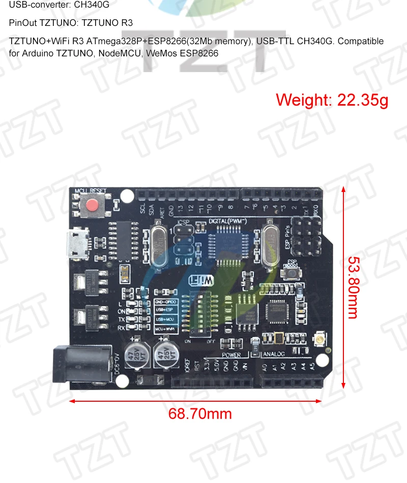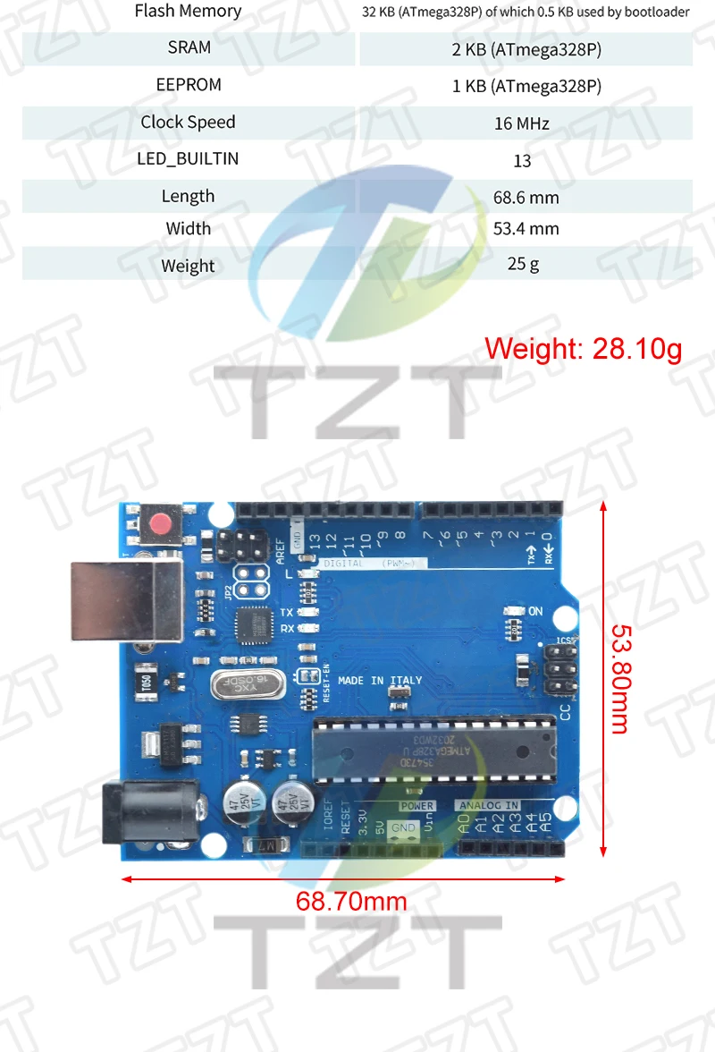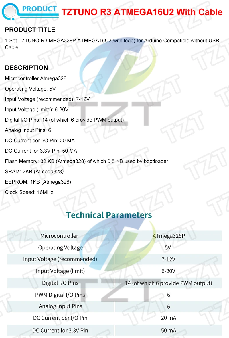 TZTUNO R3 Development Board ATMEGA328P CH340 / ATEGA16U2 Compatible For Arduino With Cable UNOR3 Proto Shield Expansion Board