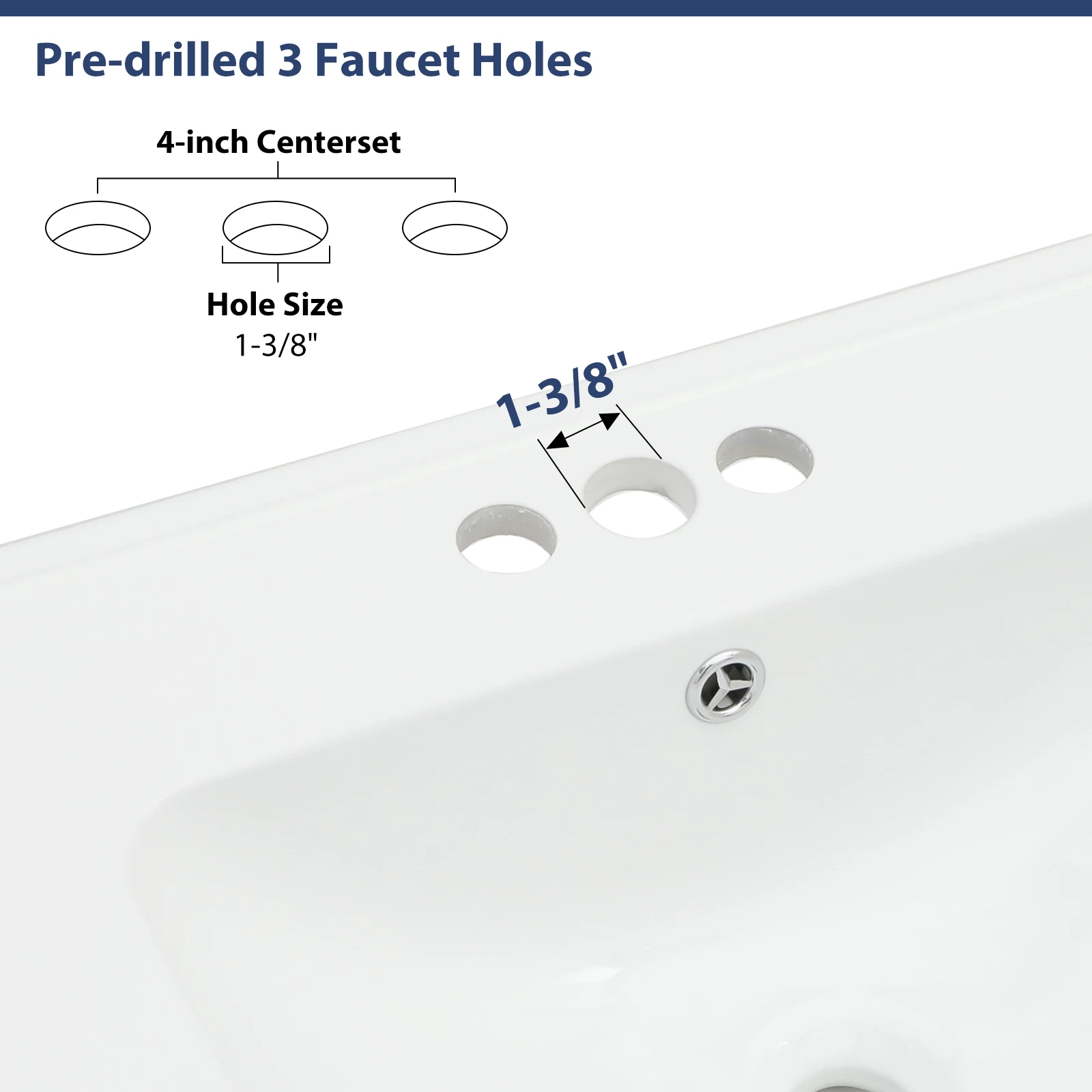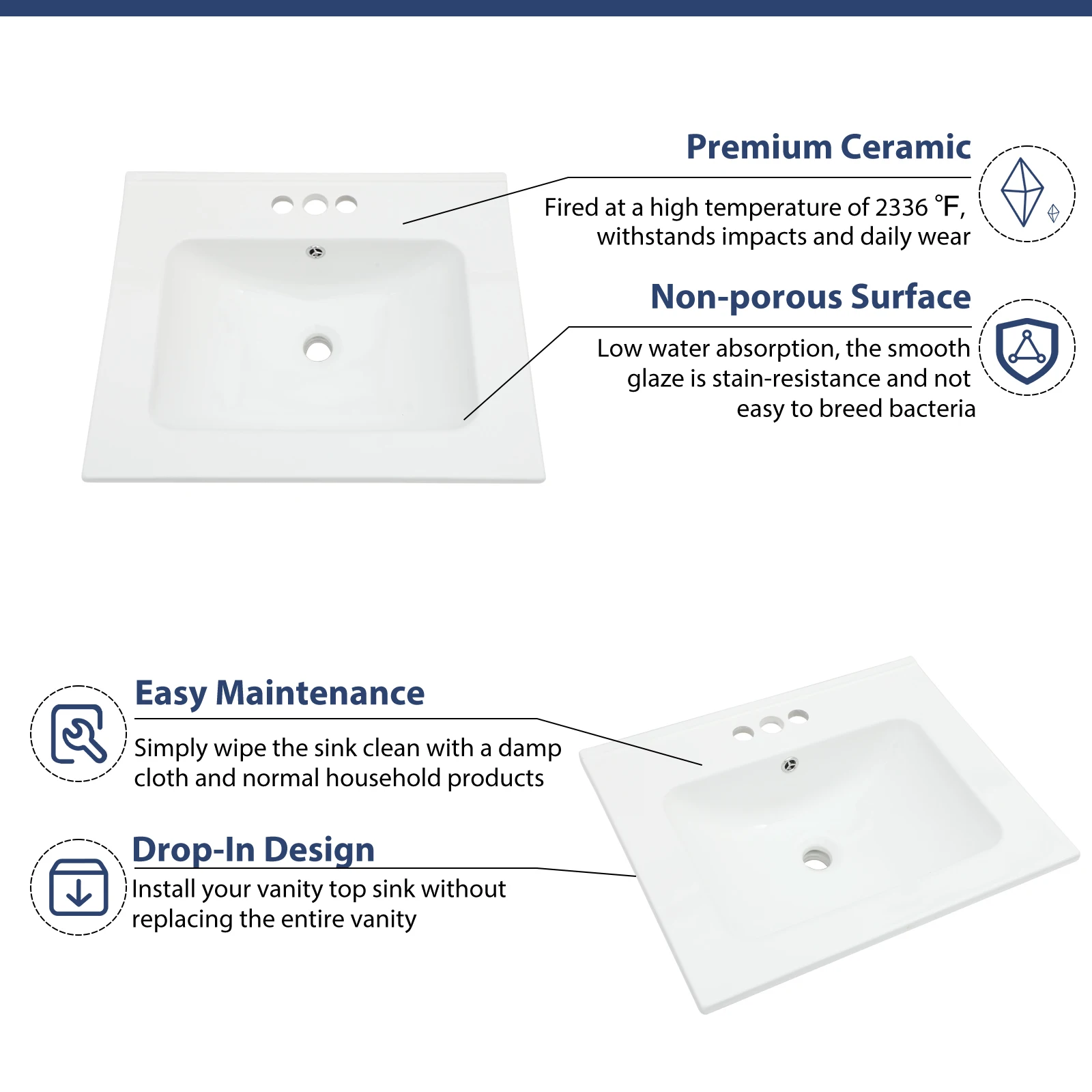 US Free Shipping Bathroom Vanity Sink Top Ceramic Vanity Sink Top with Overflow, Drop in Bathroom Vessel Sink