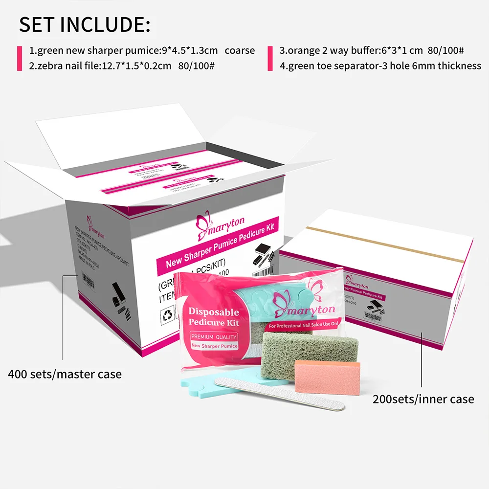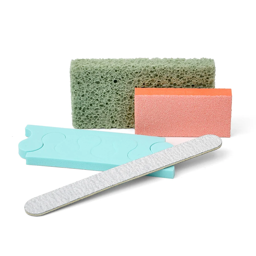 USA Free Shipping 400 Sets/Case New Sharper Pumice Toe Separator Nail Buffer File 4 in 1 Disposable Pedicure Kit Manicure Set