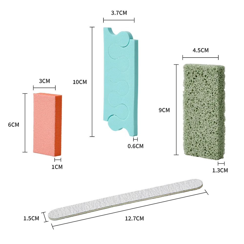Material: Nail File, Nail Buffer, New Sharper Pumice Pad, Toe Separator