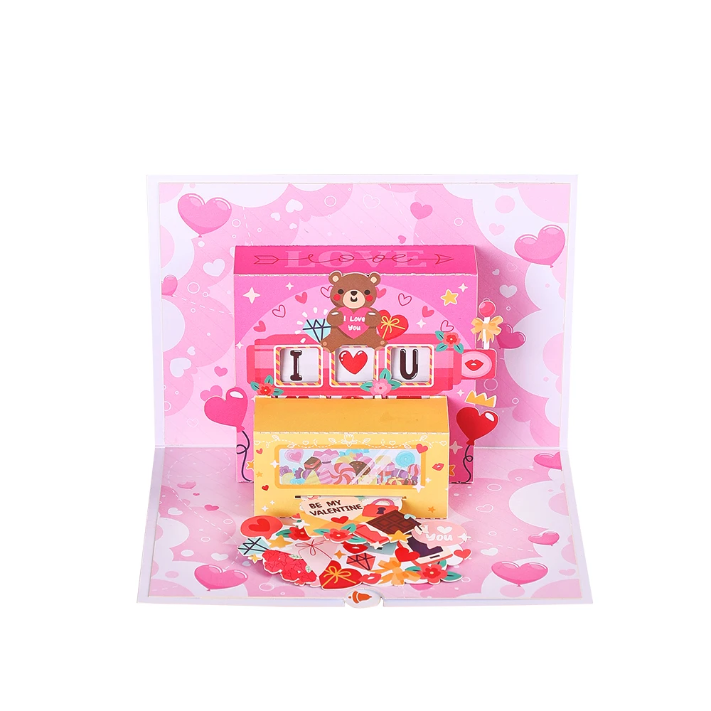 Valentines Day Greeting Card Romantic Cupid Cat Balloon Pop Up 3D Greetings Card Postcard Love Gifts For Couples Wife Lover