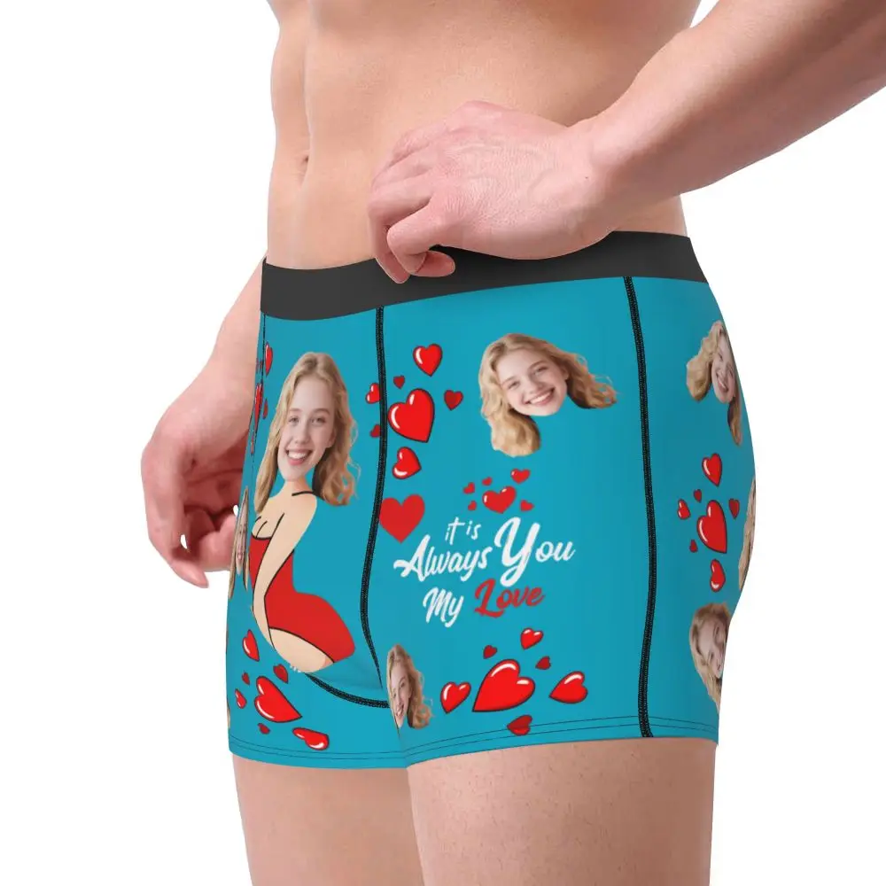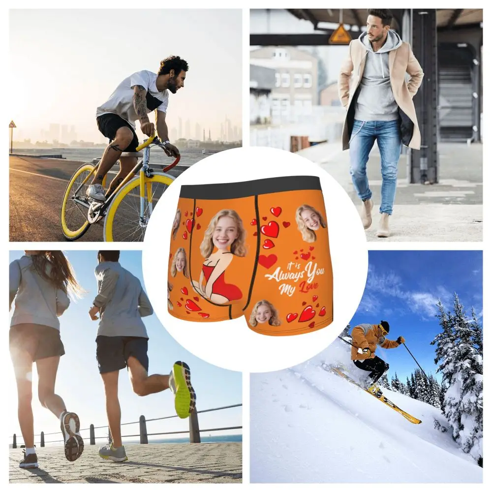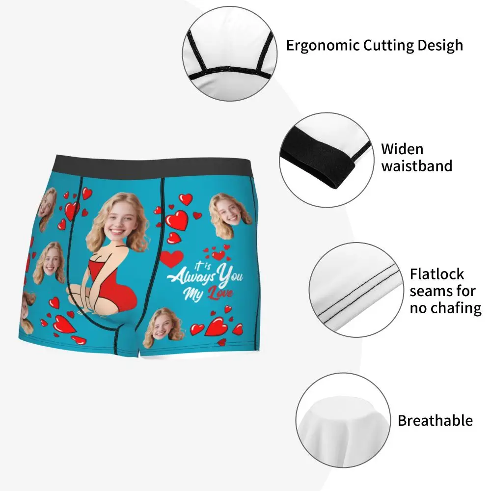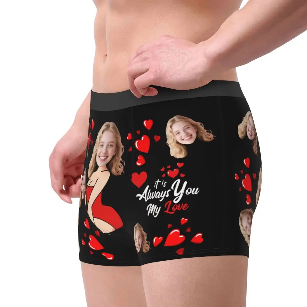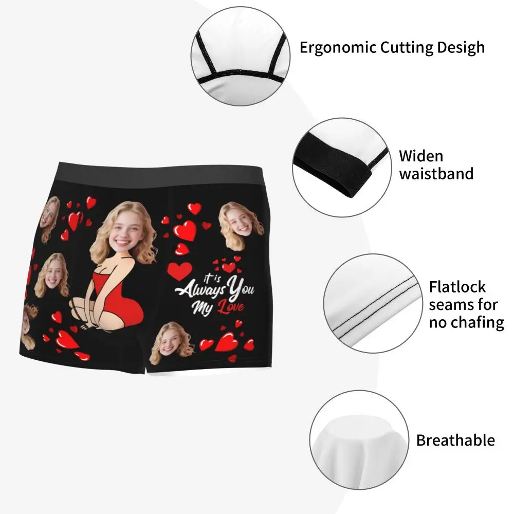 Valentine's Day Men's Personalized Face Photo Custom Underwear Design Your Own Boxer Briefs Panties Underpants For Husband