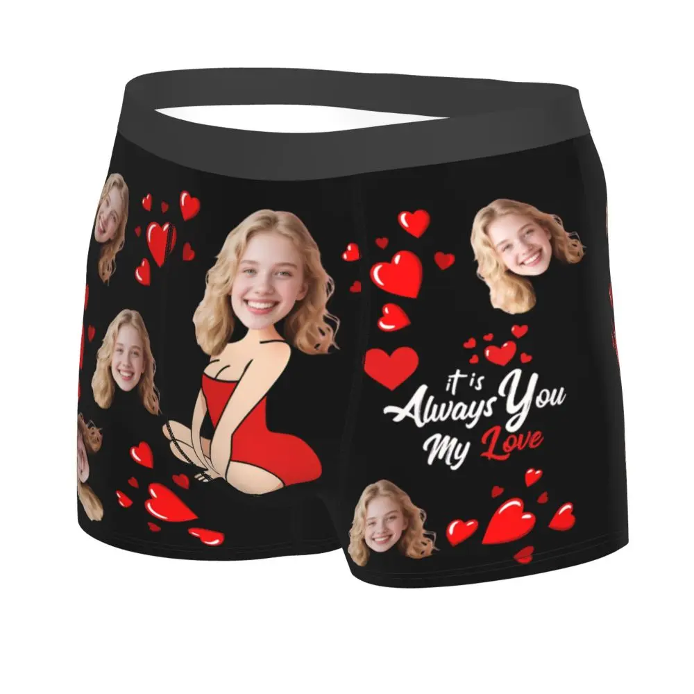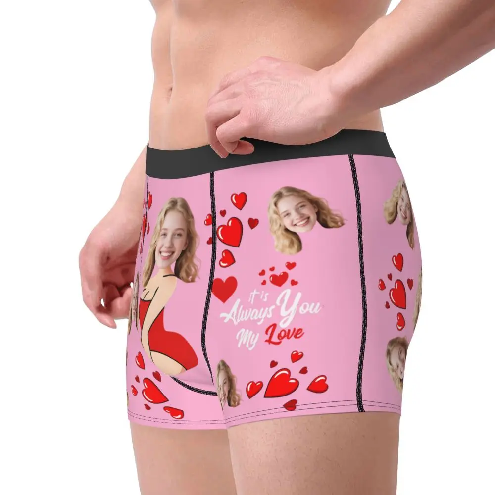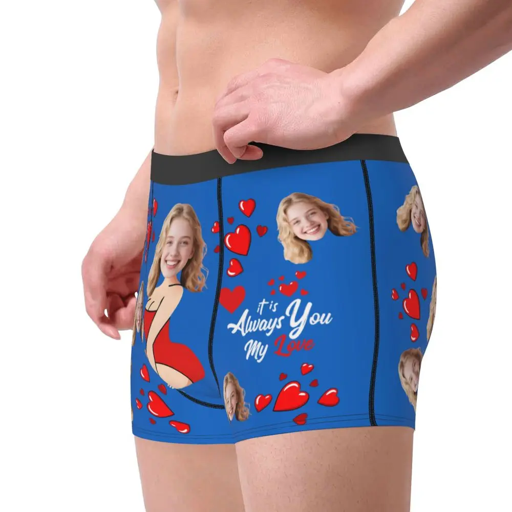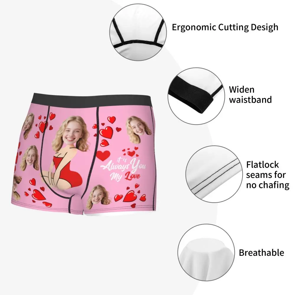 Valentine's Day Men's Personalized Face Photo Custom Underwear Design Your Own Boxer Briefs Panties Underpants For Husband
