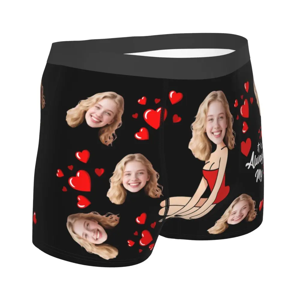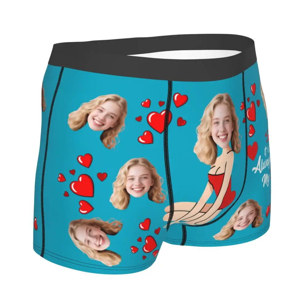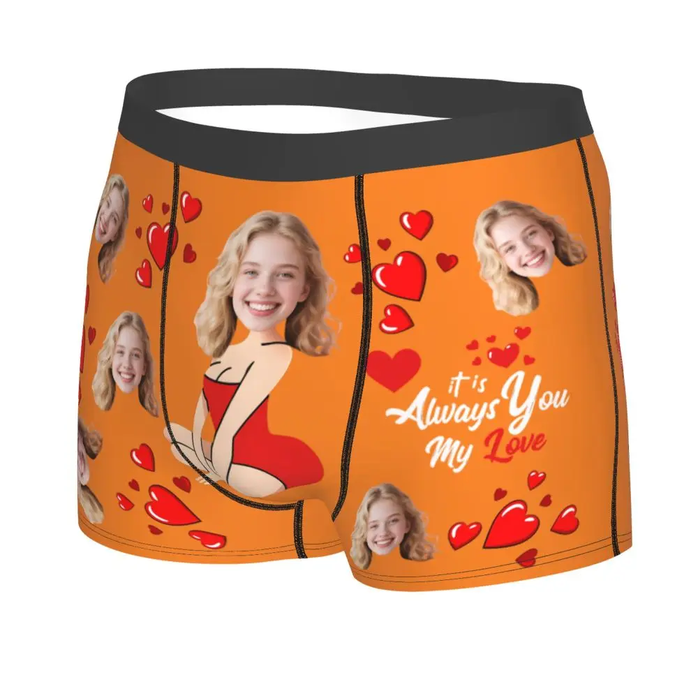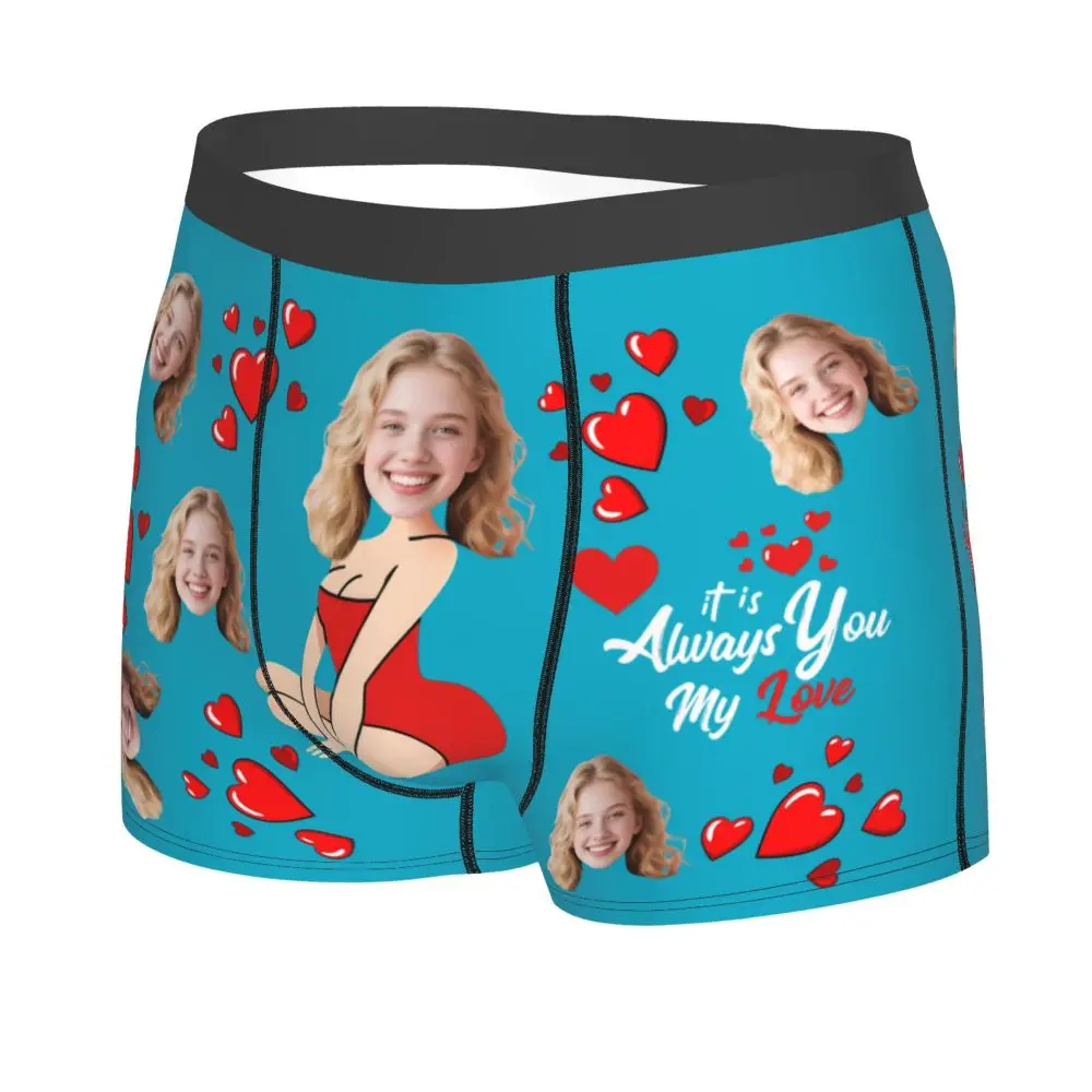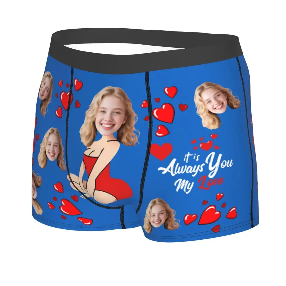Valentine's Day Men's Personalized Face Photo Custom Underwear Design Your Own Boxer Briefs Panties Underpants For Husband