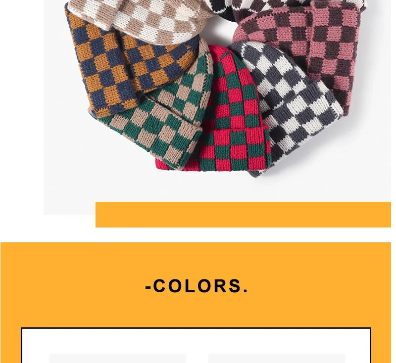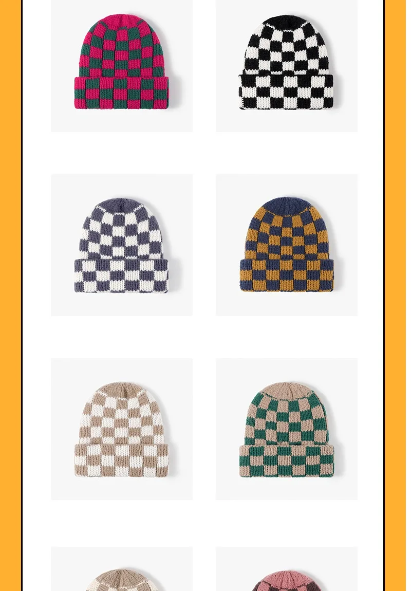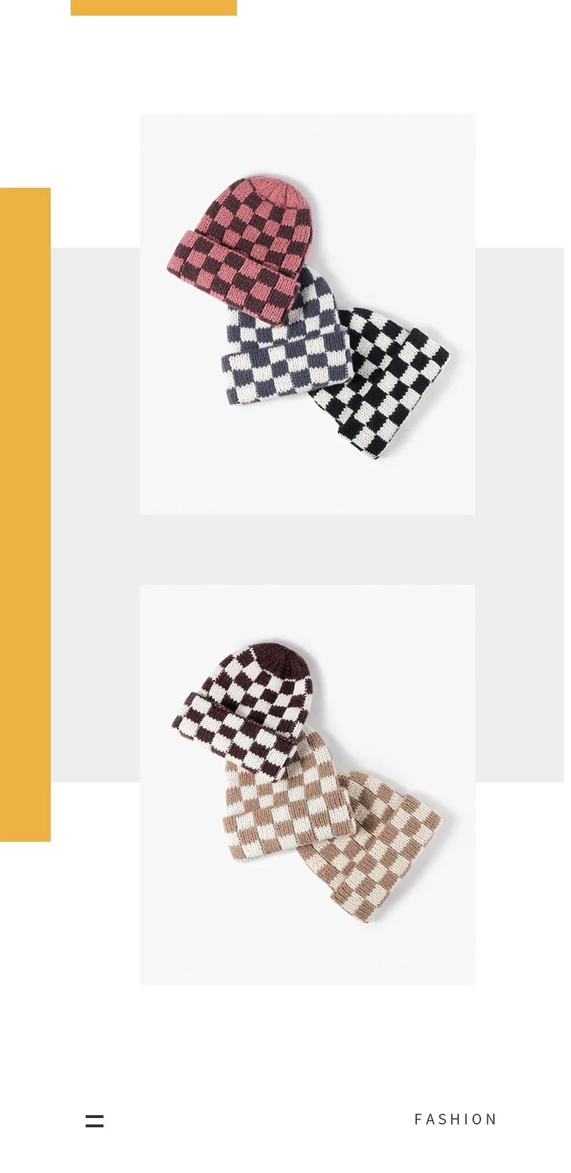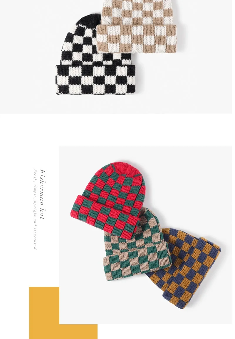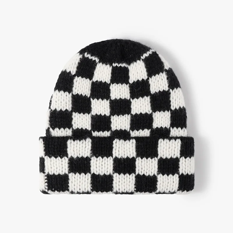 Winter Hats for Woman New Men Beanie Knitted Hat Girl Black White Check Plaid Chess Beanie Gorros Warm Bonnet Ladies Casual Cap