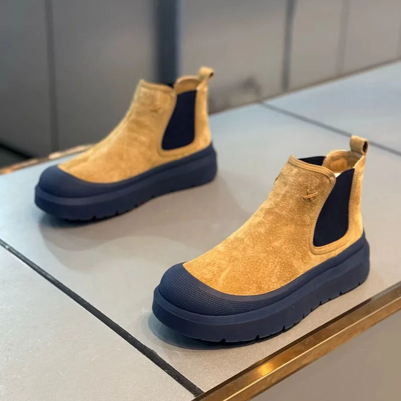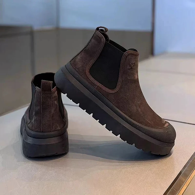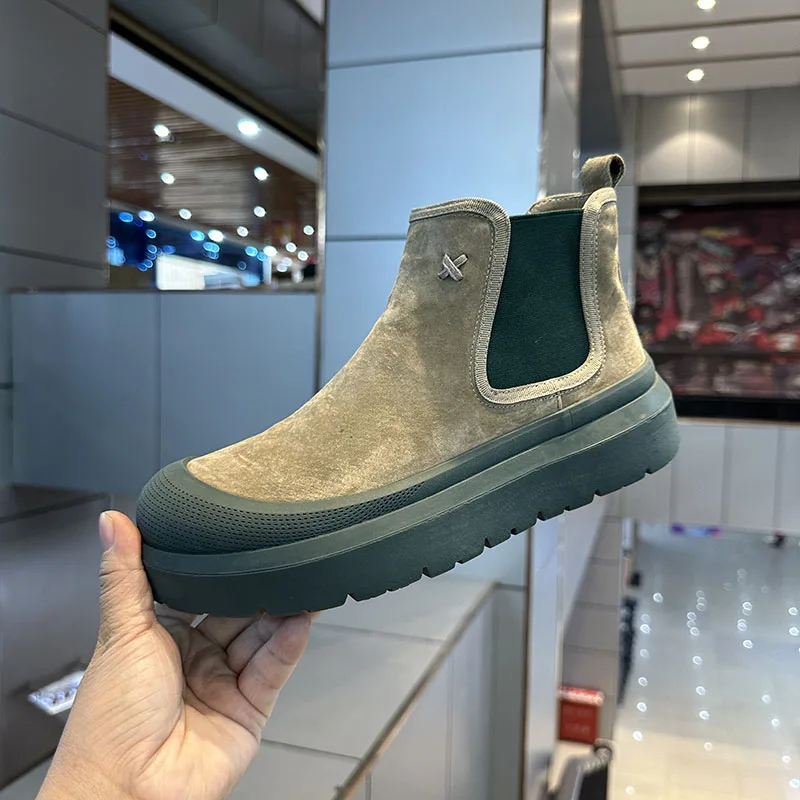 Winter Men Cow Suede Snow Boots Outdoor Cotton Boots for Fashion Handmade Casual Shoes with Waterproof Non-slip Ankle Boots
