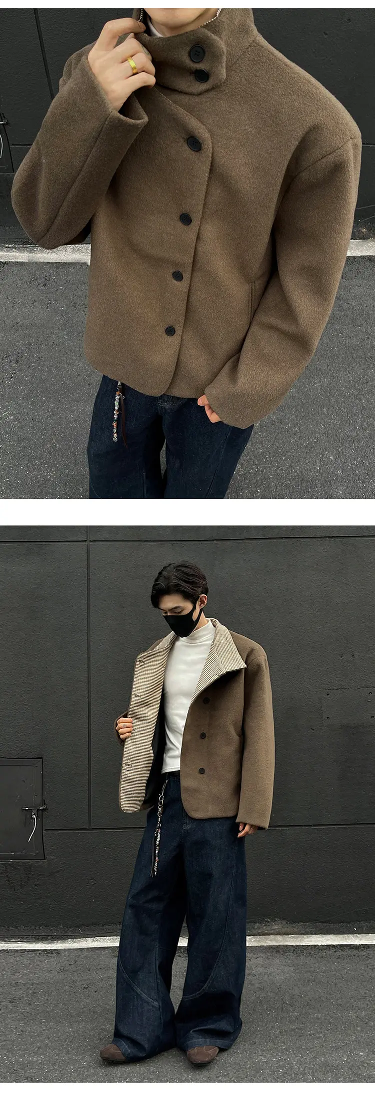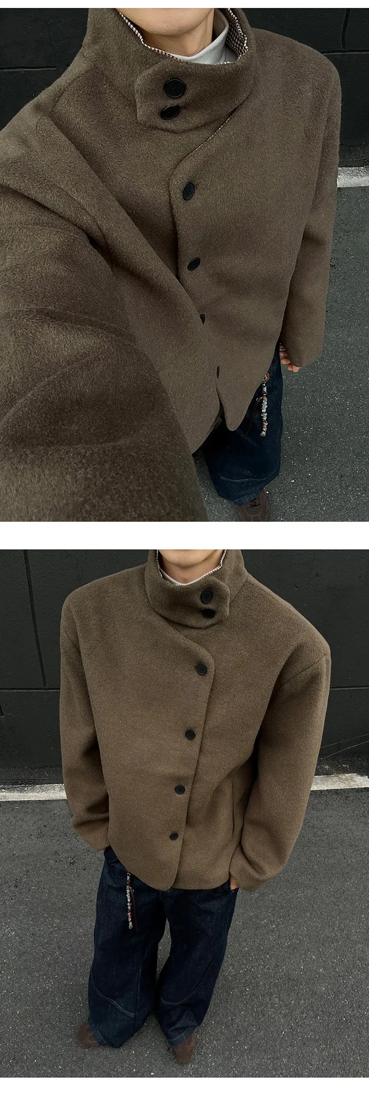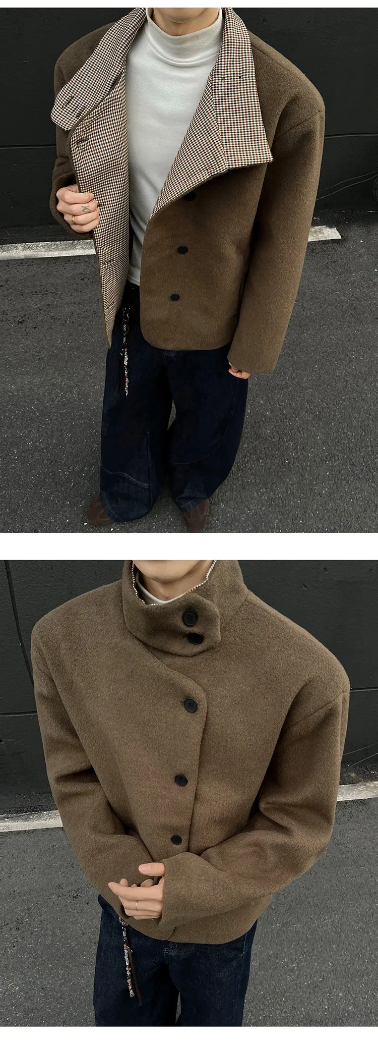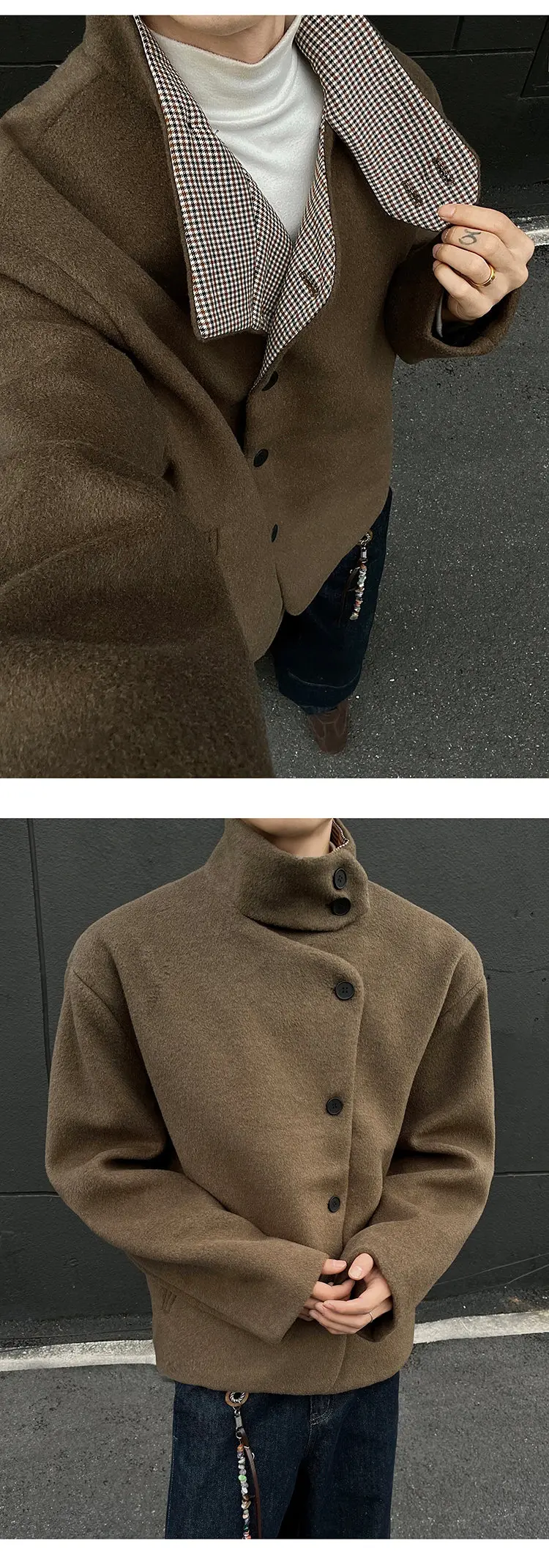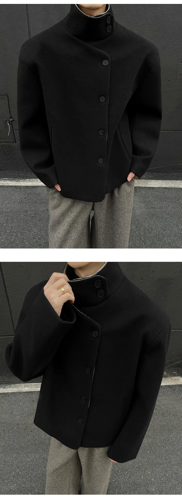 Winter woolen jacket men Caot Warm windproof 2025 New Style Fashionally Slim-Fitting Short Jacket Coat Individuality stand-up