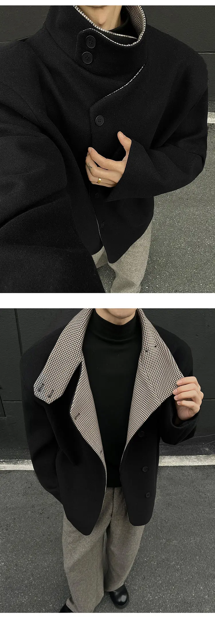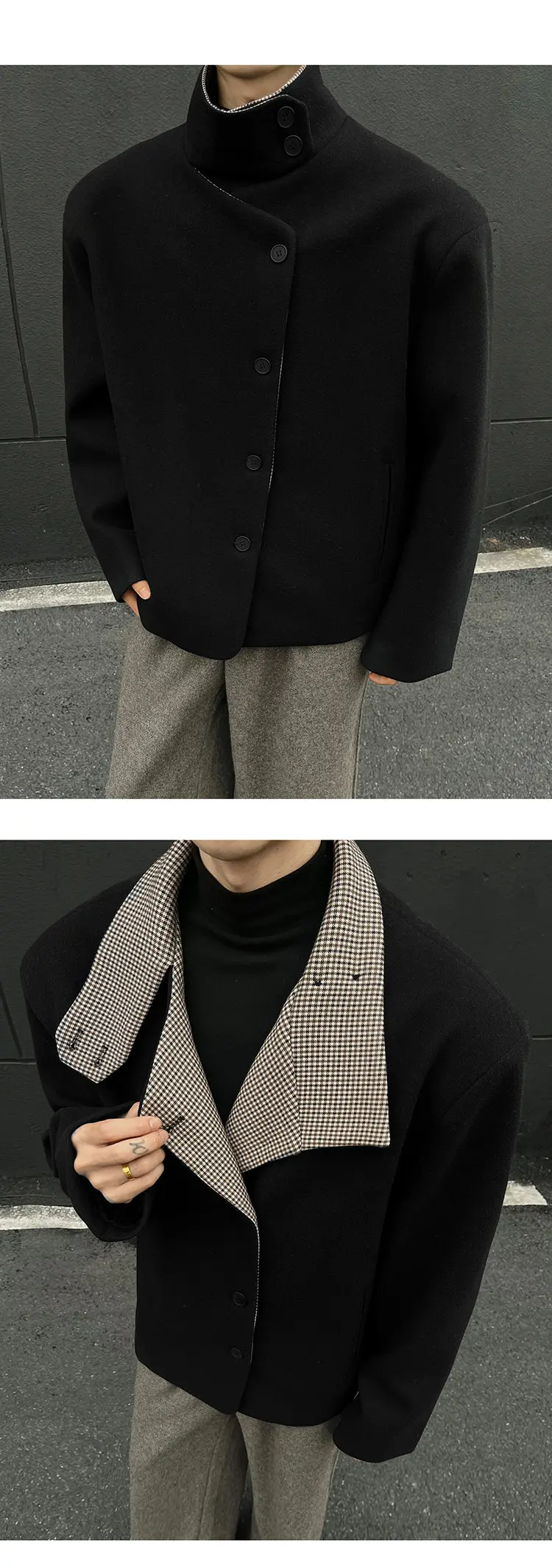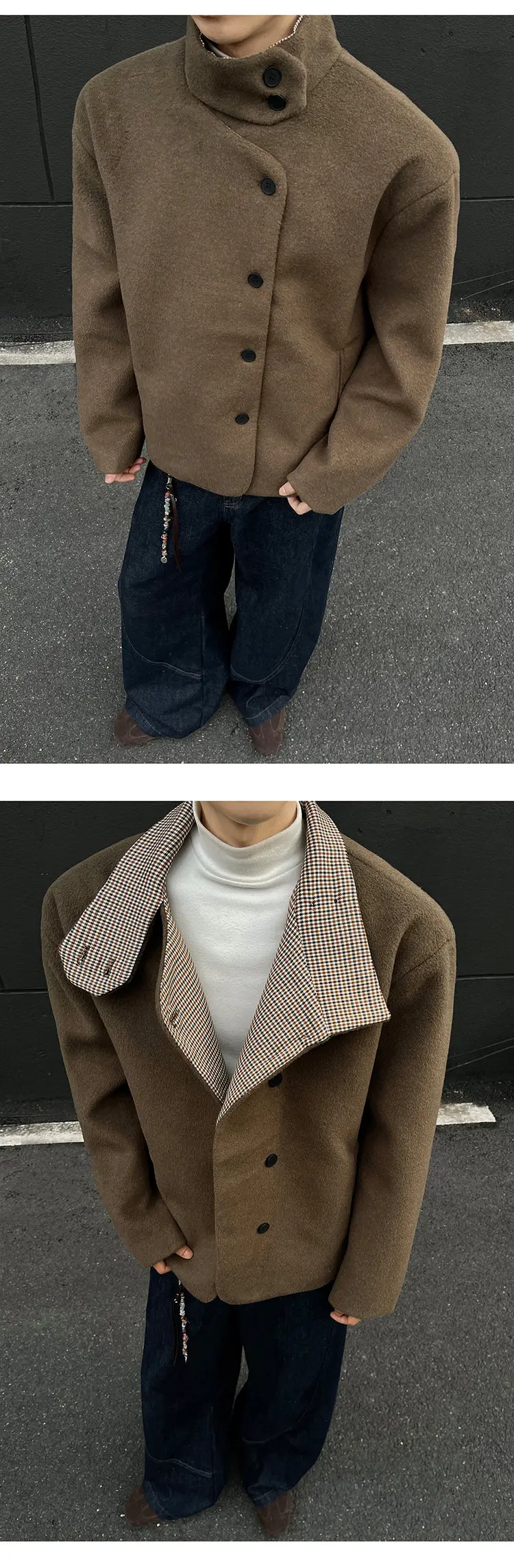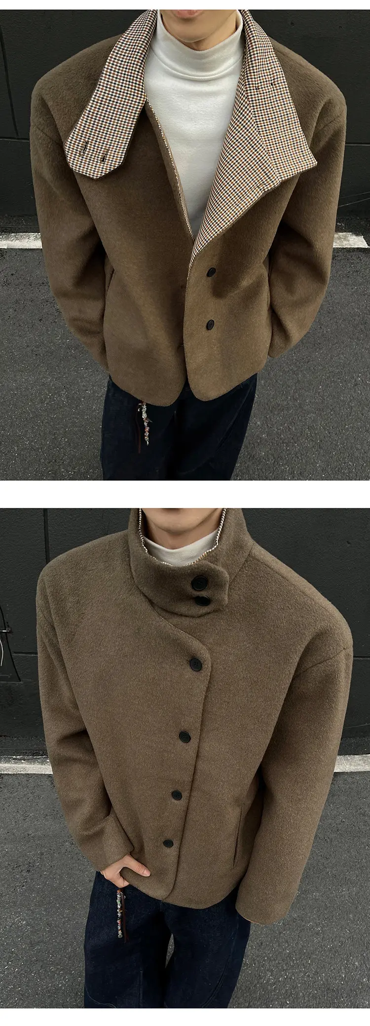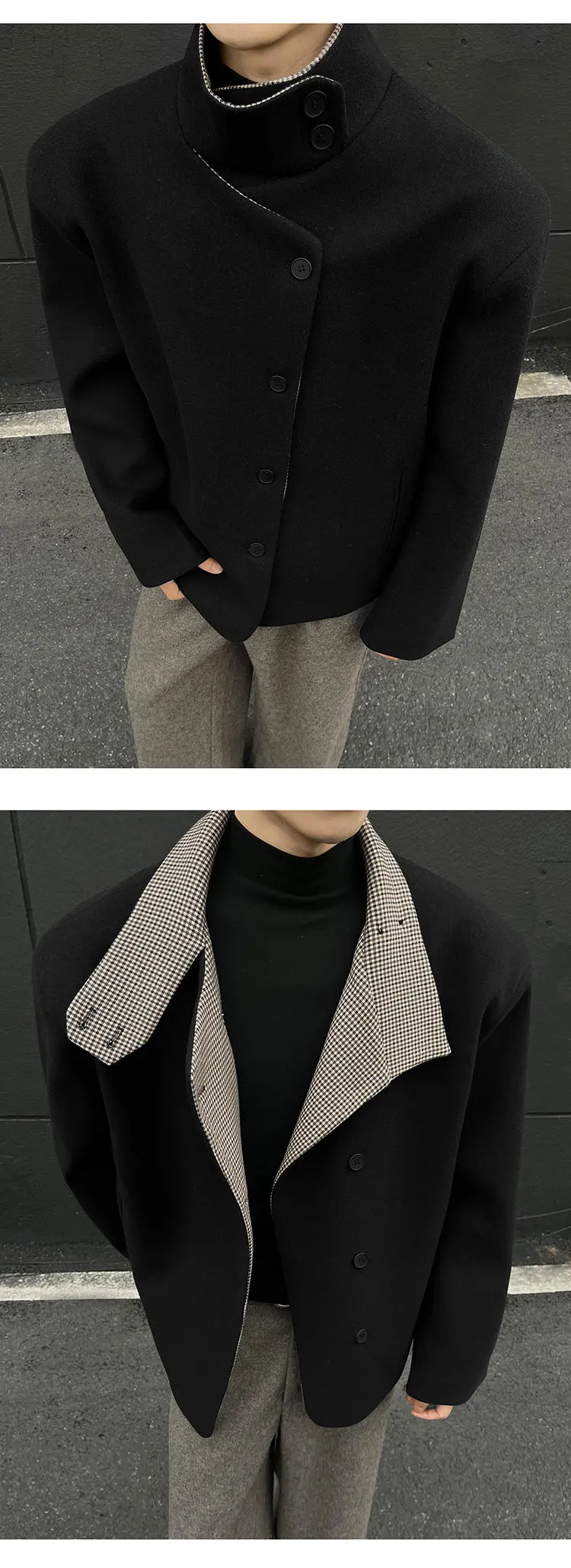 Winter woolen jacket men Caot Warm windproof 2025 New Style Fashionally Slim-Fitting Short Jacket Coat Individuality stand-up