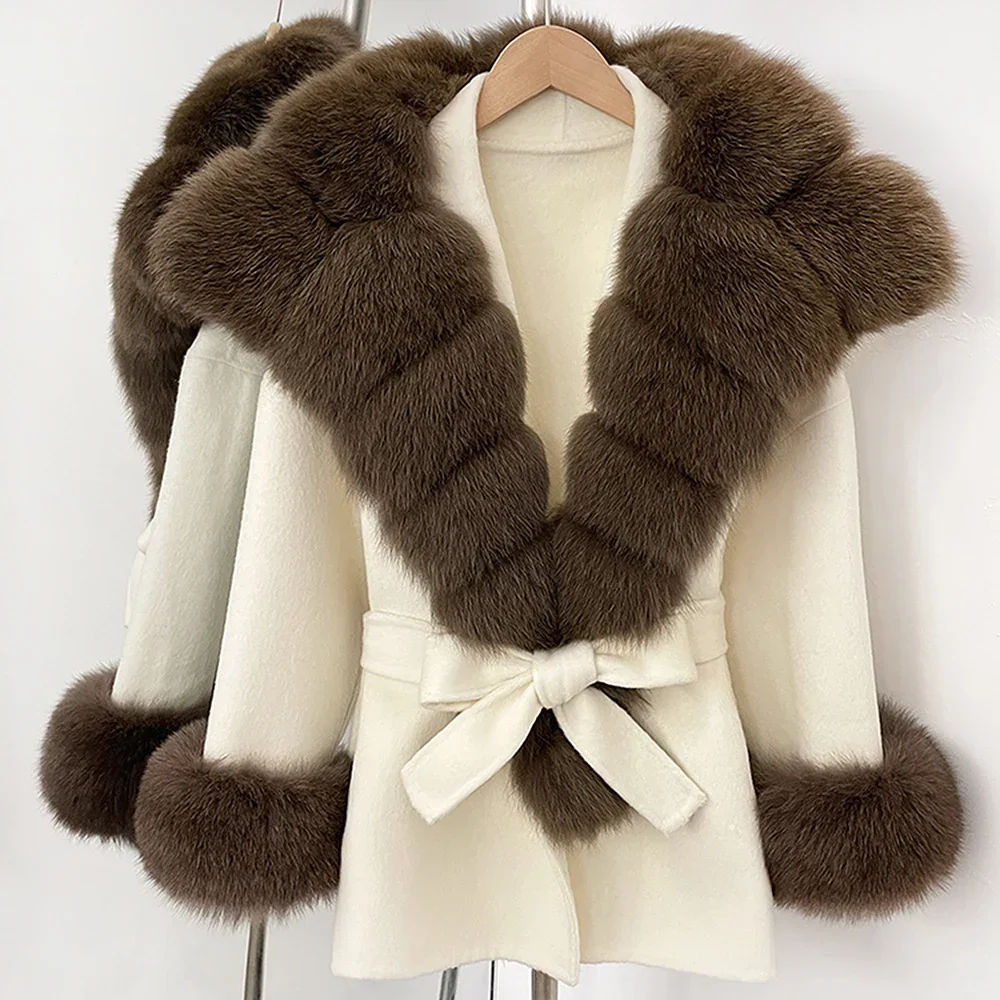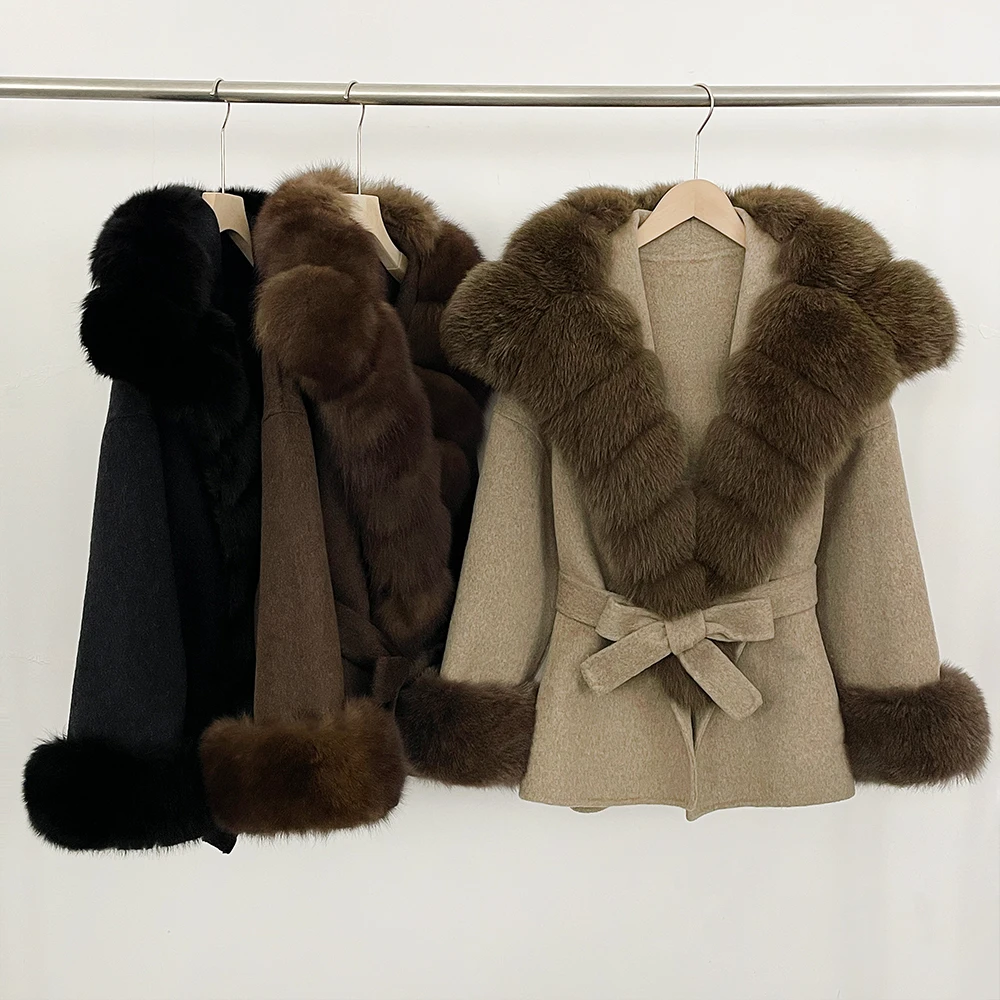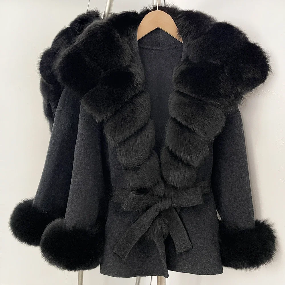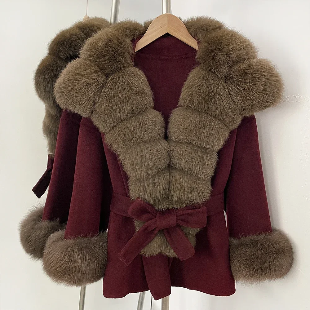 Women Winter Coats Korean Popular Women's Clothes High Quality Coat Outerwear 2025 Ladies Wool Coats with Real Fur Trim Clothing